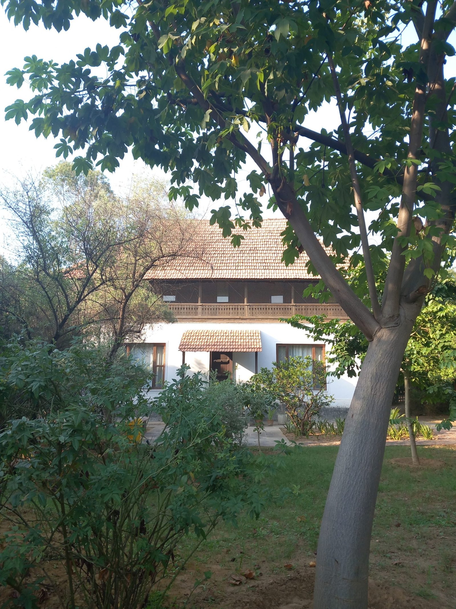 Sadhranabagh was never designed as a hotel which explains its unconventionality. It was the home, situated close to Sultanpur Bird Sanctuary of the famous architect Pradeep Sachdeva, who is known amongst other projects for Dilli Haat. More than just being a ‘craft market’ Dilli Haat was a first. An urban space created as a people centric experience, combined with rediscovering the heart of India through village craftspeople, and using natural and indigenous construction materials. He then went on to create The Garden of the Five Senses, if you haven’t been there in Delhi, then you should.